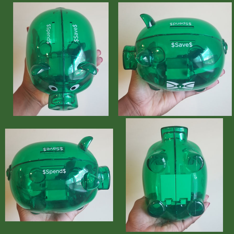 Use the spend side and the save side to teach children to spend / save their dollars and cents wisely or as a cool gift! This can also help adults conveniently store spare change. Being able to see the contents of our cool bank makes each money drop more satisfying!